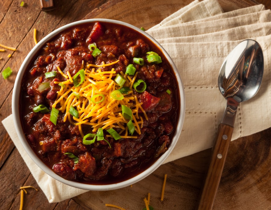 This is a classic chili meal with beef and beans. Chili is a nice idea if you don’t have too much time but want something tasty for lunch.