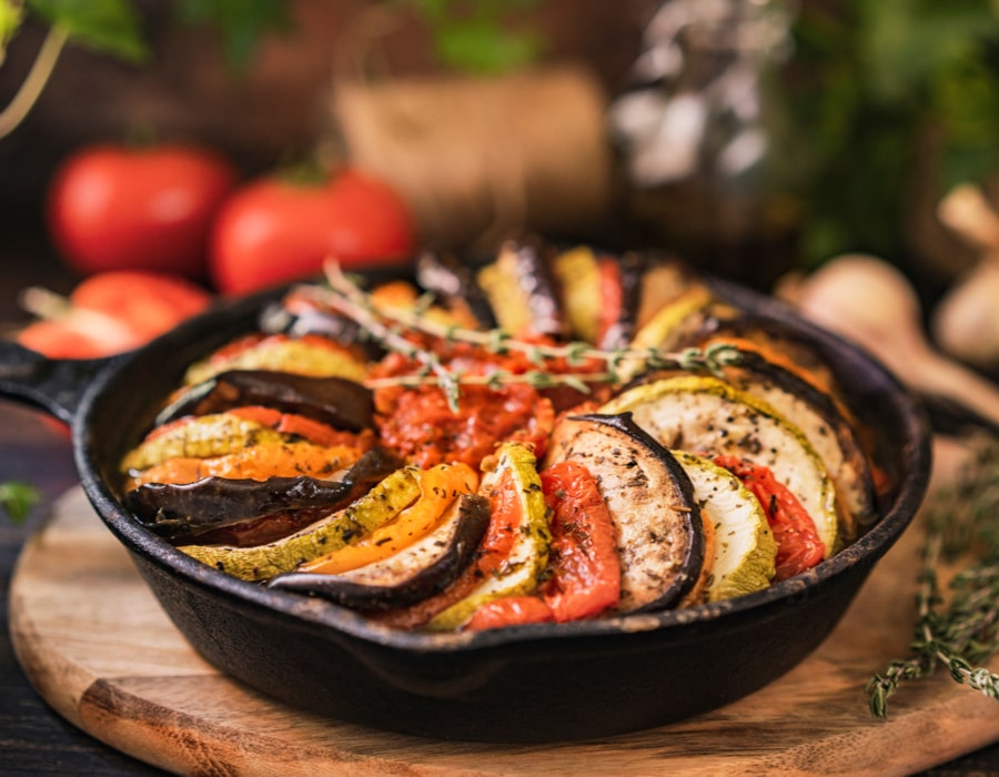 Ratatouille is a well-known French stew that is easy to cook. All you need is some summer vegetables get sliced and put in a pan.